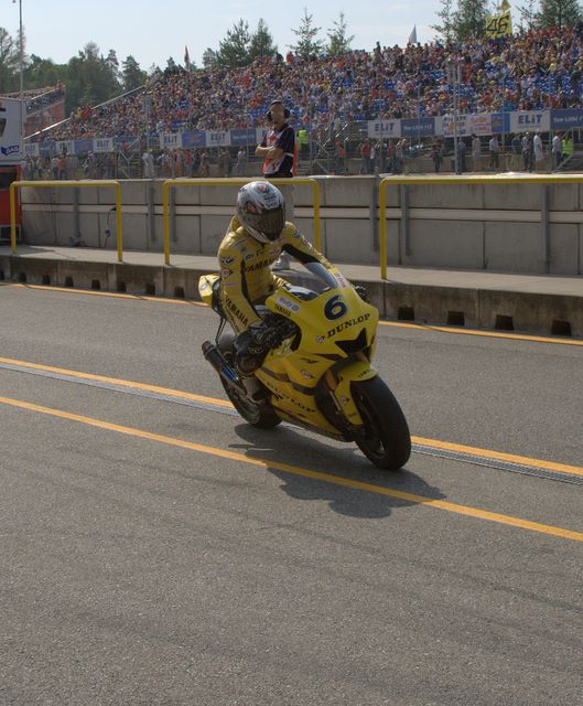 MotoGP -- Tamada coming in during warm-up (Jack nearly got hit!)